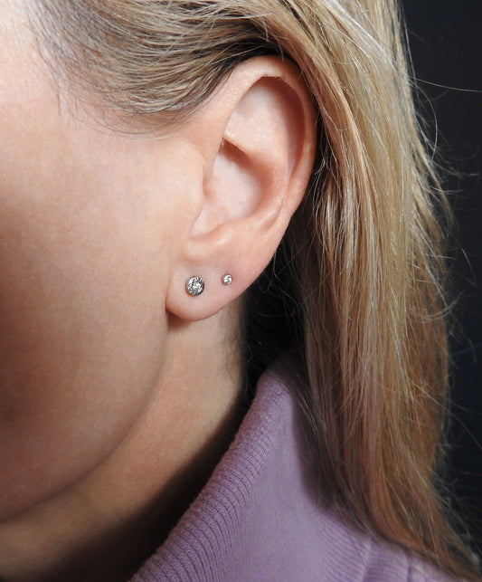 Planish bezel diamond studs
