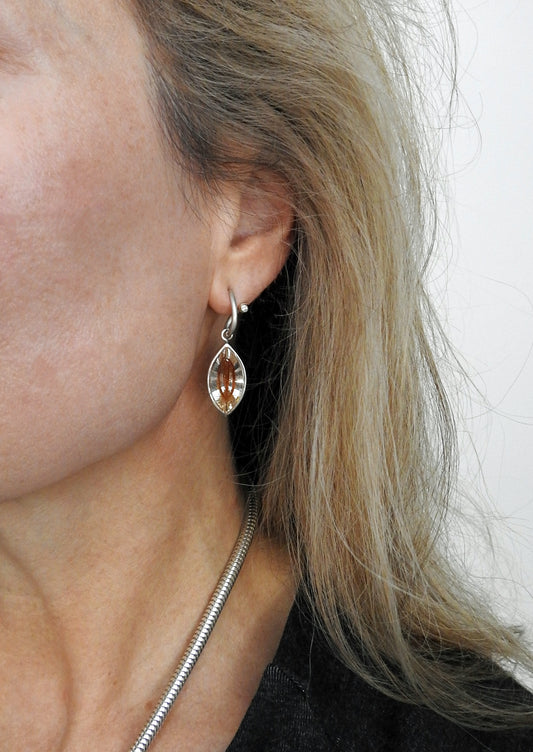 B E hoops medium spiral with rutilated quartz mirror cut marquise dangles