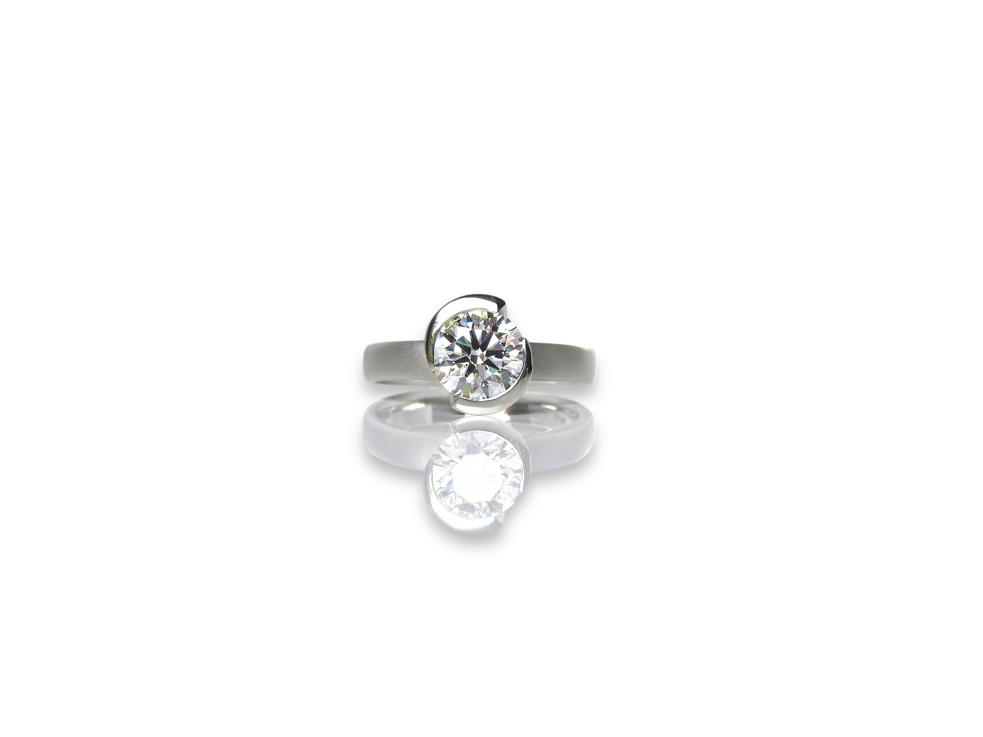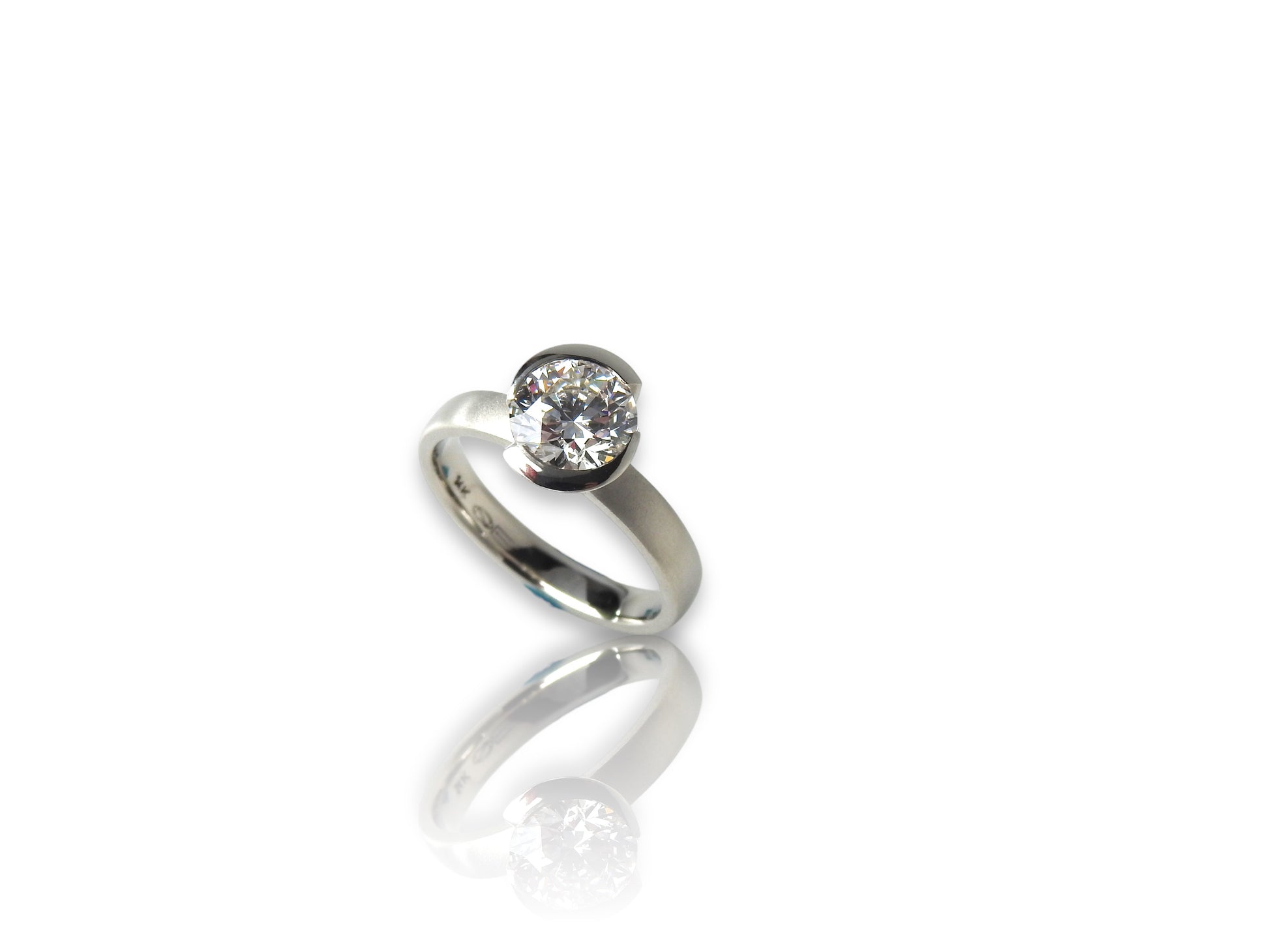 Bespoke 2.00ct Lab- Grown 8X round brilliant diamond in 14kt white gold partial, wave bezel set on a 45, on a 3mm softened band.