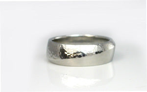 18kt white gold ring angled knife edge facetted, with matt and planished detailing. Great ring for someone who's looking for sculpture and uniqueness.