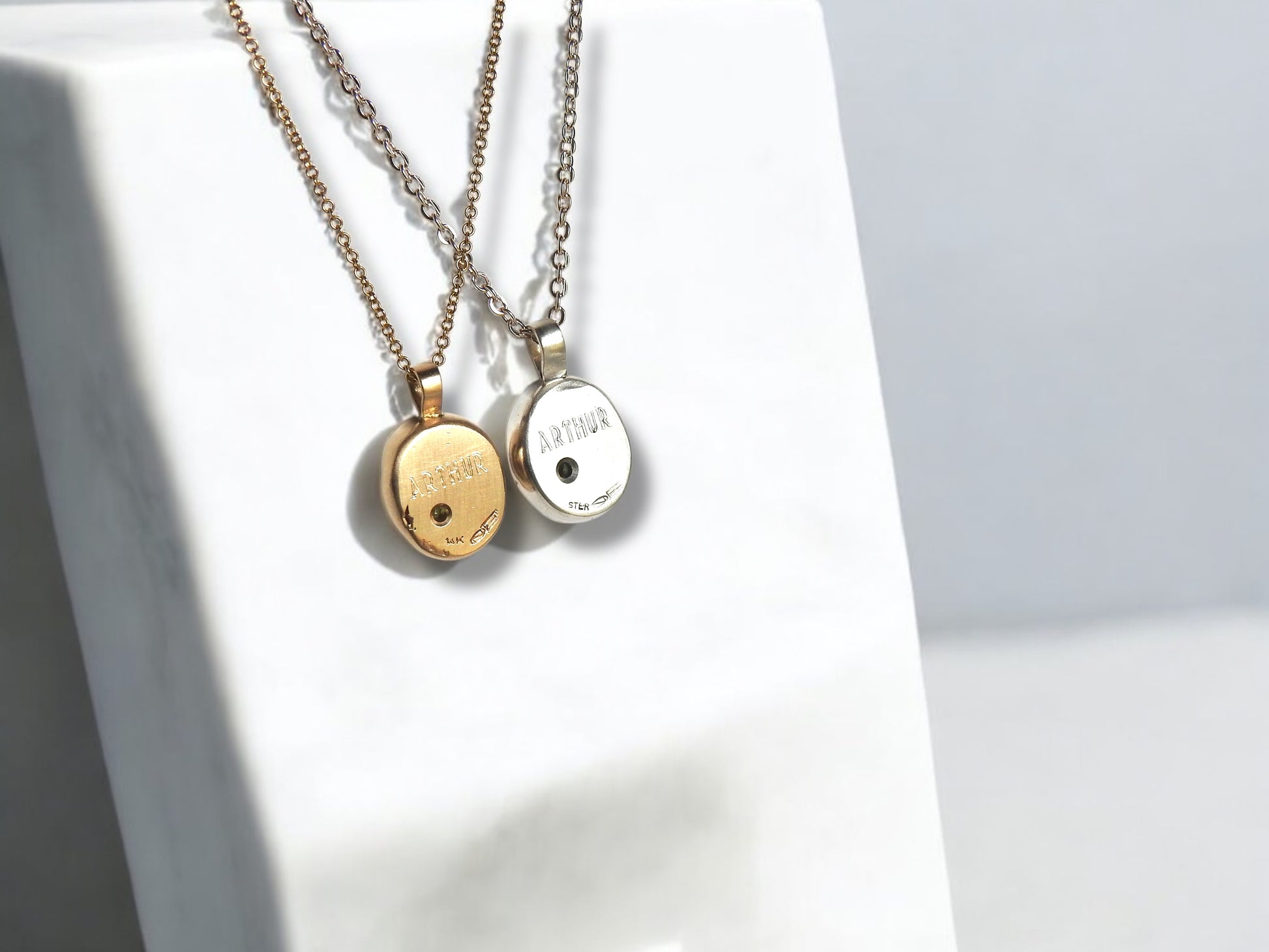 Bespoke fingerprint pendants, A gift for Lynns sister Martha, to celebrate another beautiful grandchild Arthur born August 25 2024. Print pendant with engraving and birthstone.