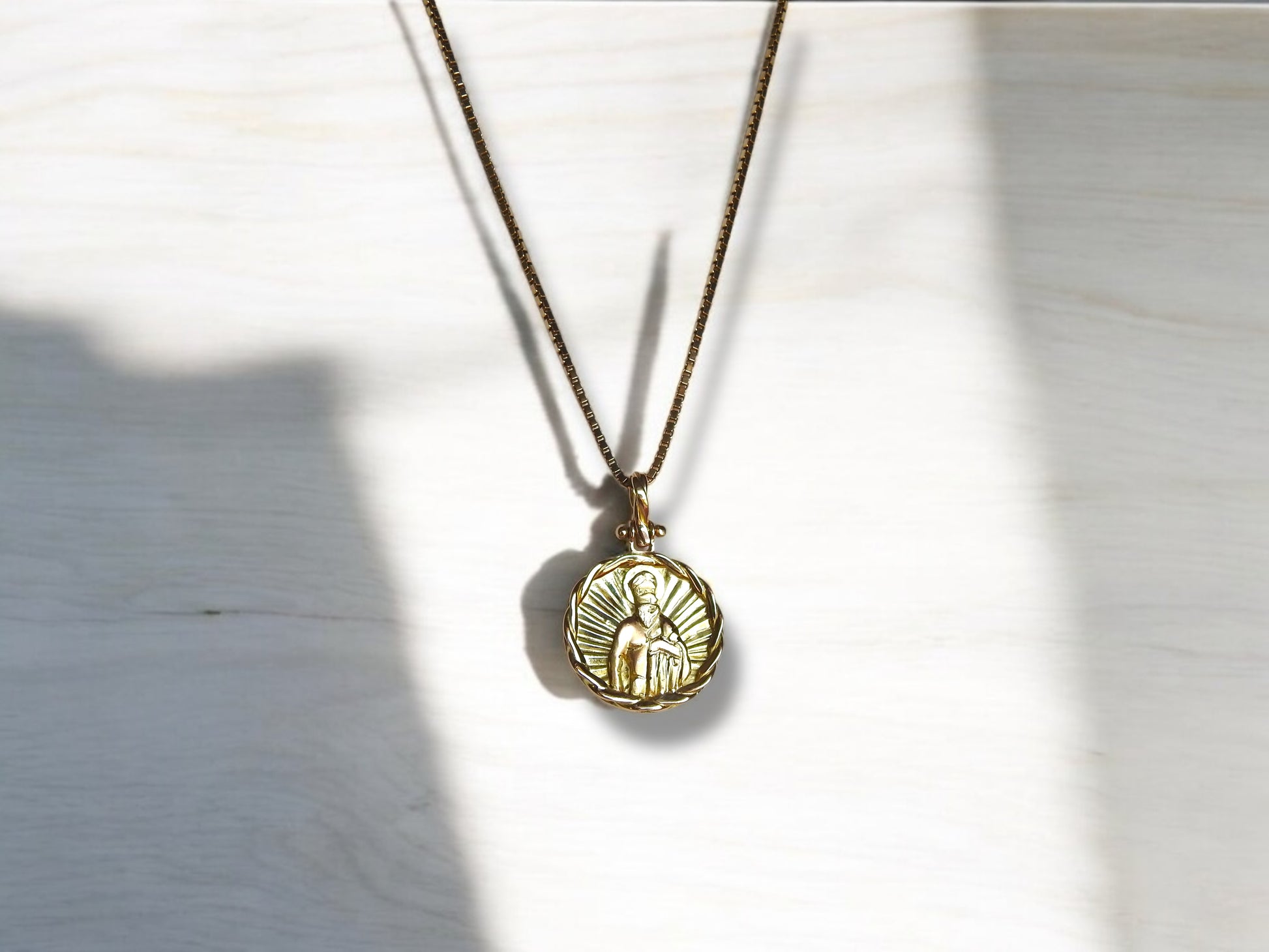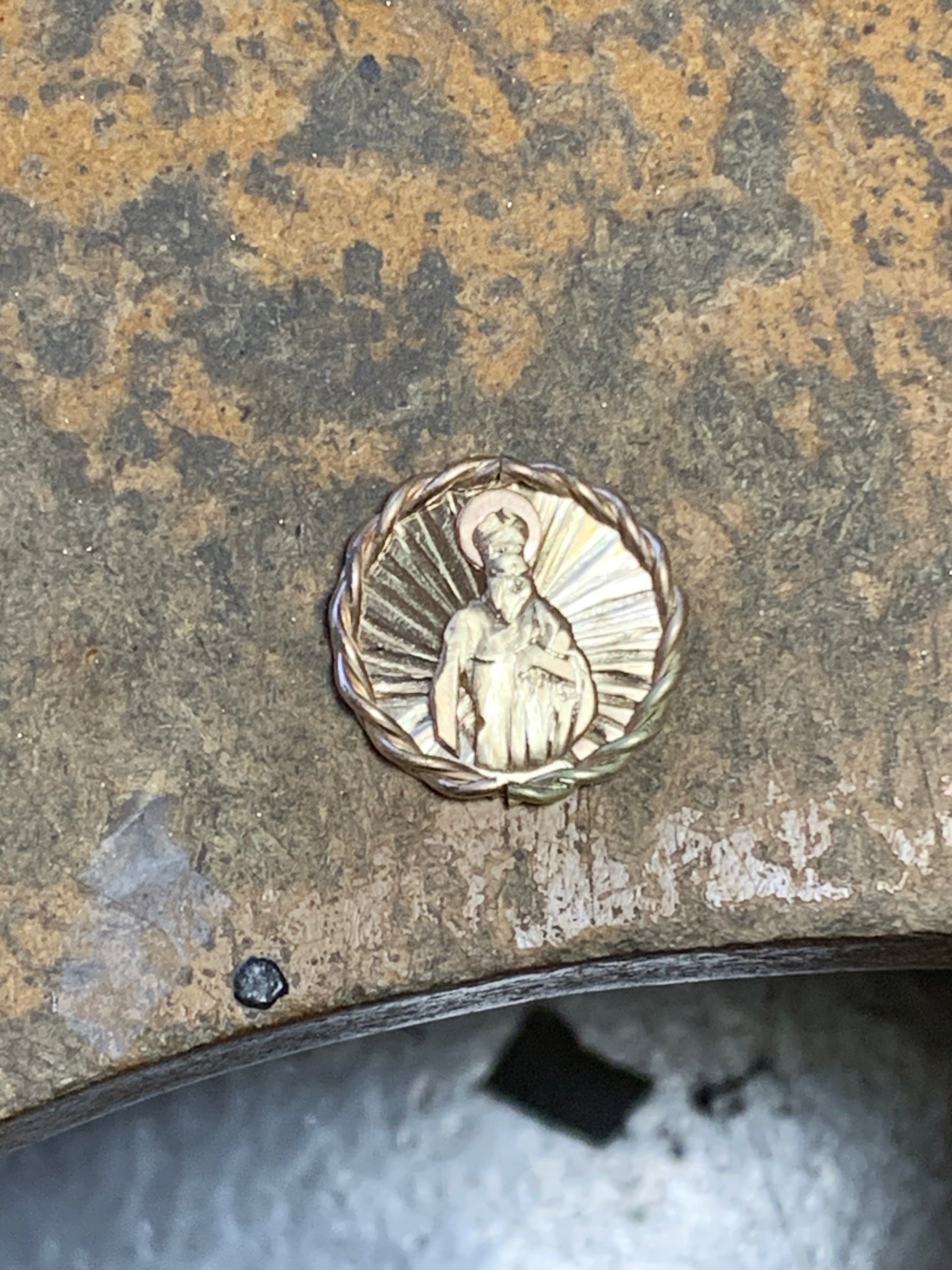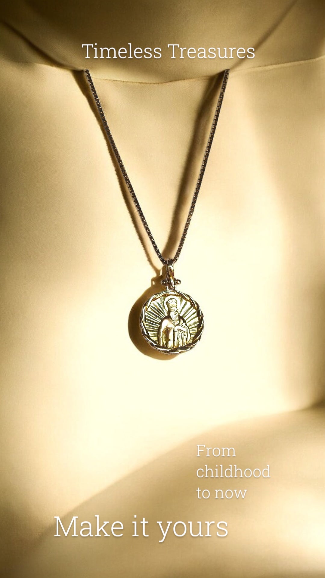 Bespoke Saint Bartholomew/Italy pendant: Re-working gold form Ben's grandparent's jewellery to create this unique ZEALmetal design. On the map of Italy is set a ruby from Ben's fathers ring in the location where his grandparent's were born.