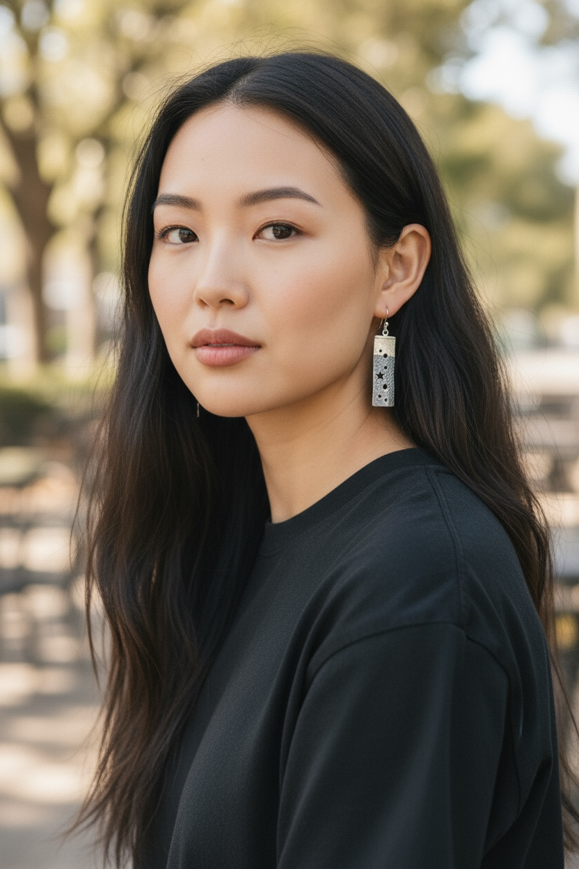 Sterling silver earrings roller printed, drilled, with pierced out stars, oxidized and matte finish on 5mm round ball studs. or ball-end Shepard hooks.