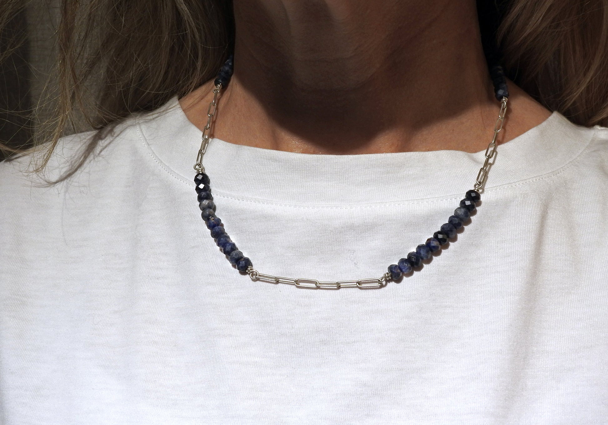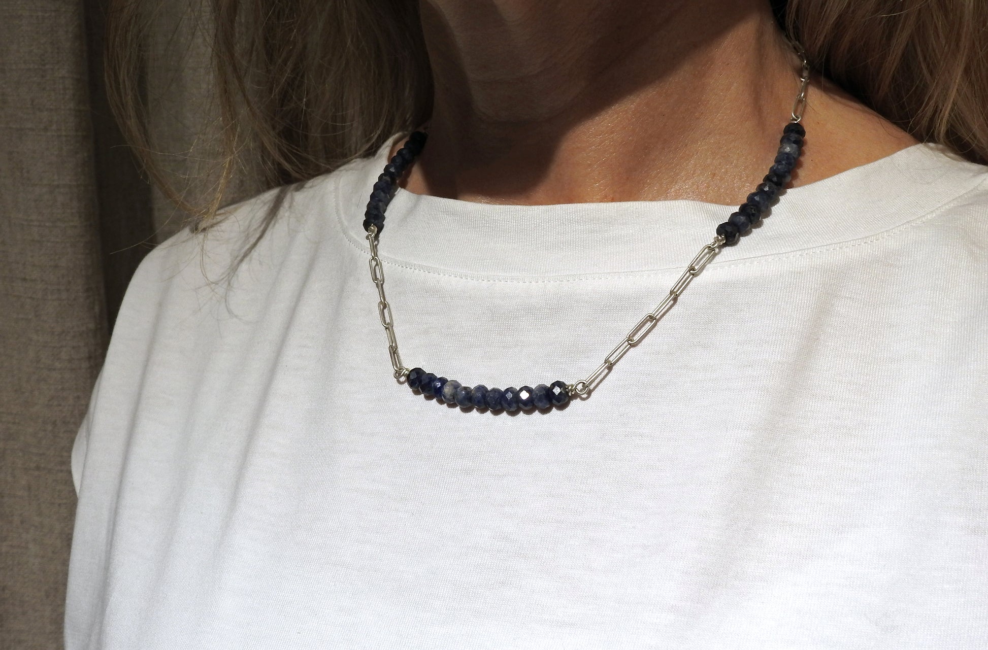 Denim blue facetted 4x6mm rondelle shaped beads Sapphires.