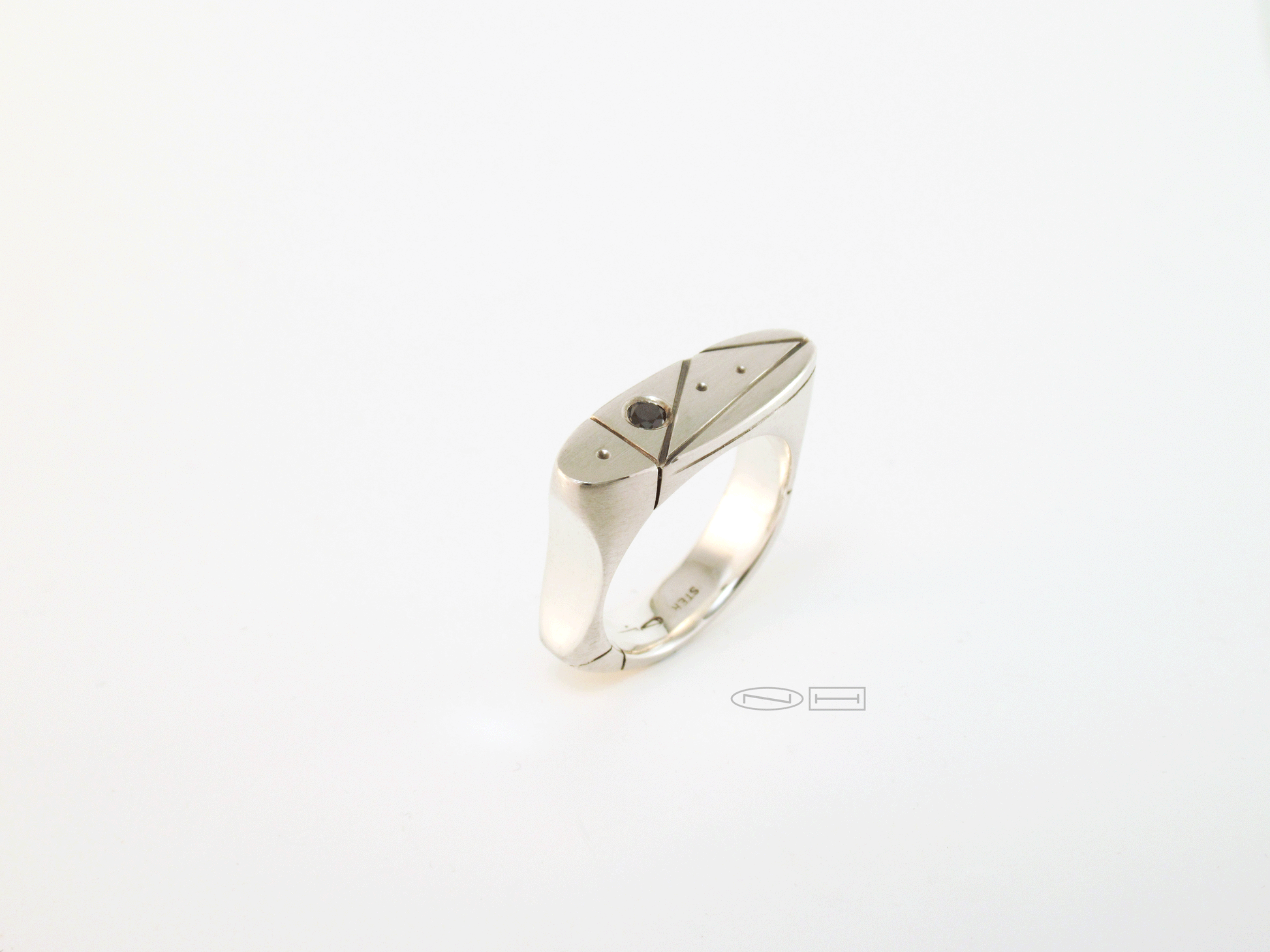 Constellation ~ Sterling silver form fitting wide oval ring, with oxidized galactic design, accented with 2.6mm round facetted black diamond.