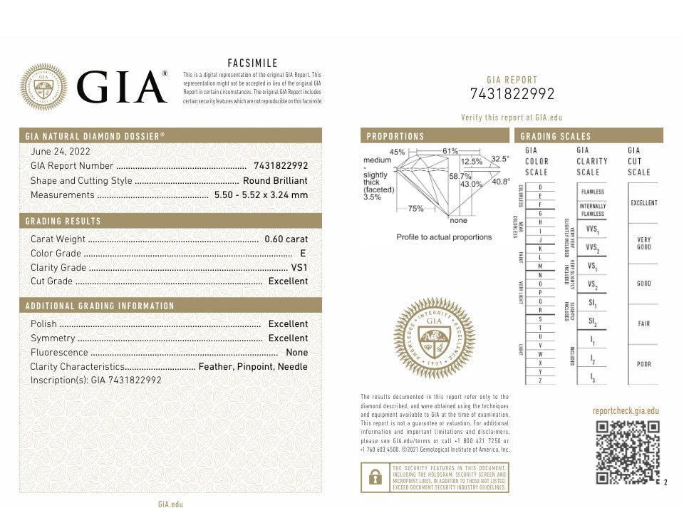 0.60 CARAT, E COLOR, VS1 CLARITY