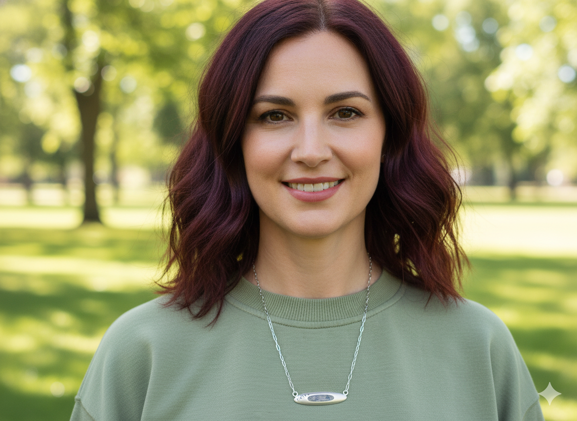 Faith Limestone inlay oval pendant