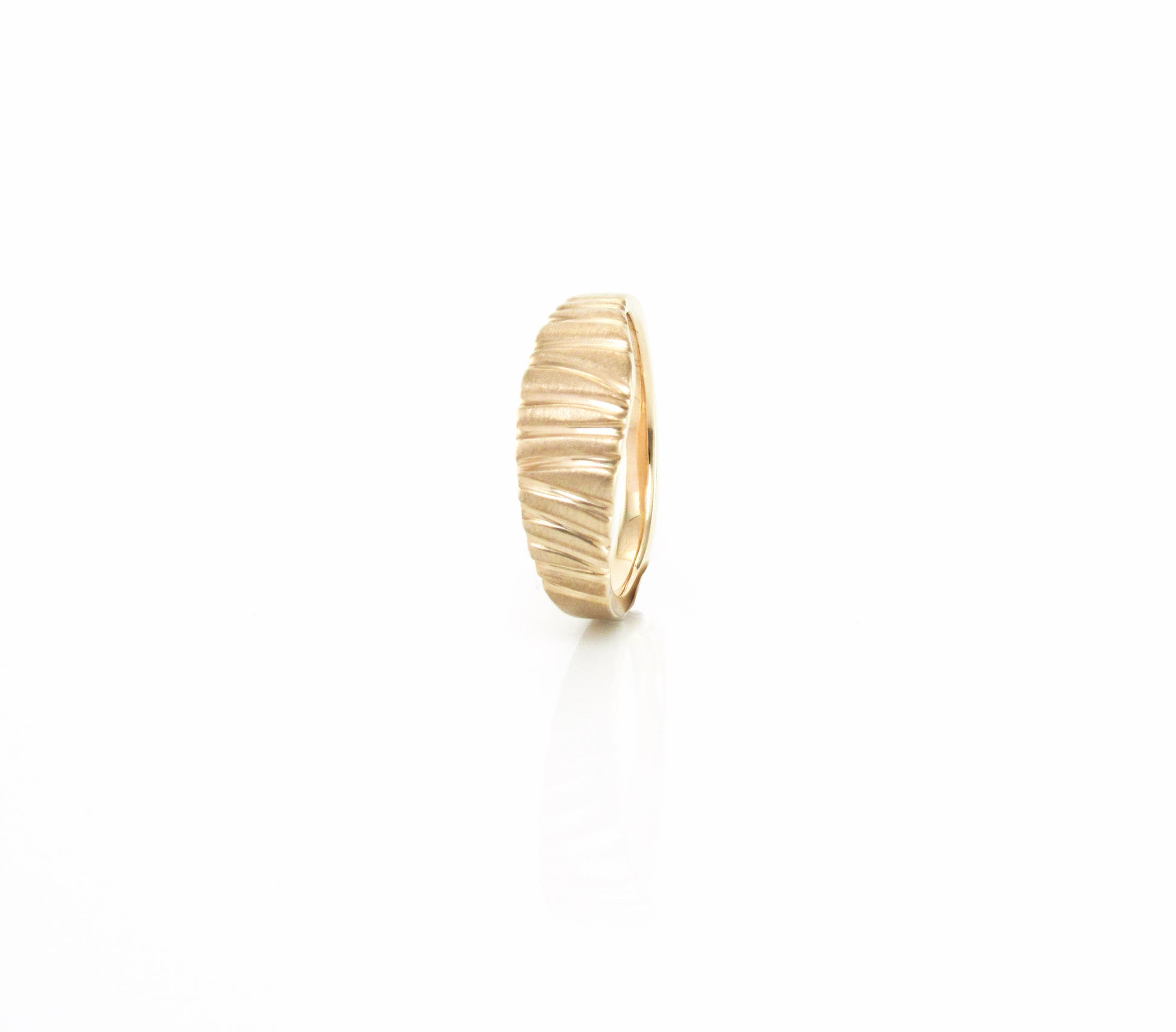 Approx. 6mm on top tapering to 2mm. There is a flat edge on onside ideal for stacking with a beautiful organic flow on the other.