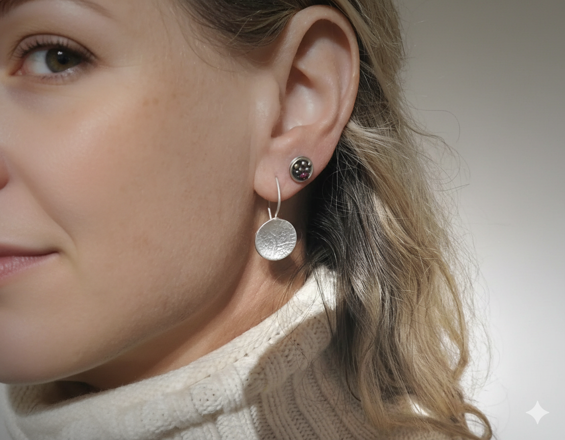 Each pair are uniquely handmade and will vary. Image shown is what they will look like. Each pair comes with a mandala card and the reflection behind these simple everyday earrings.
