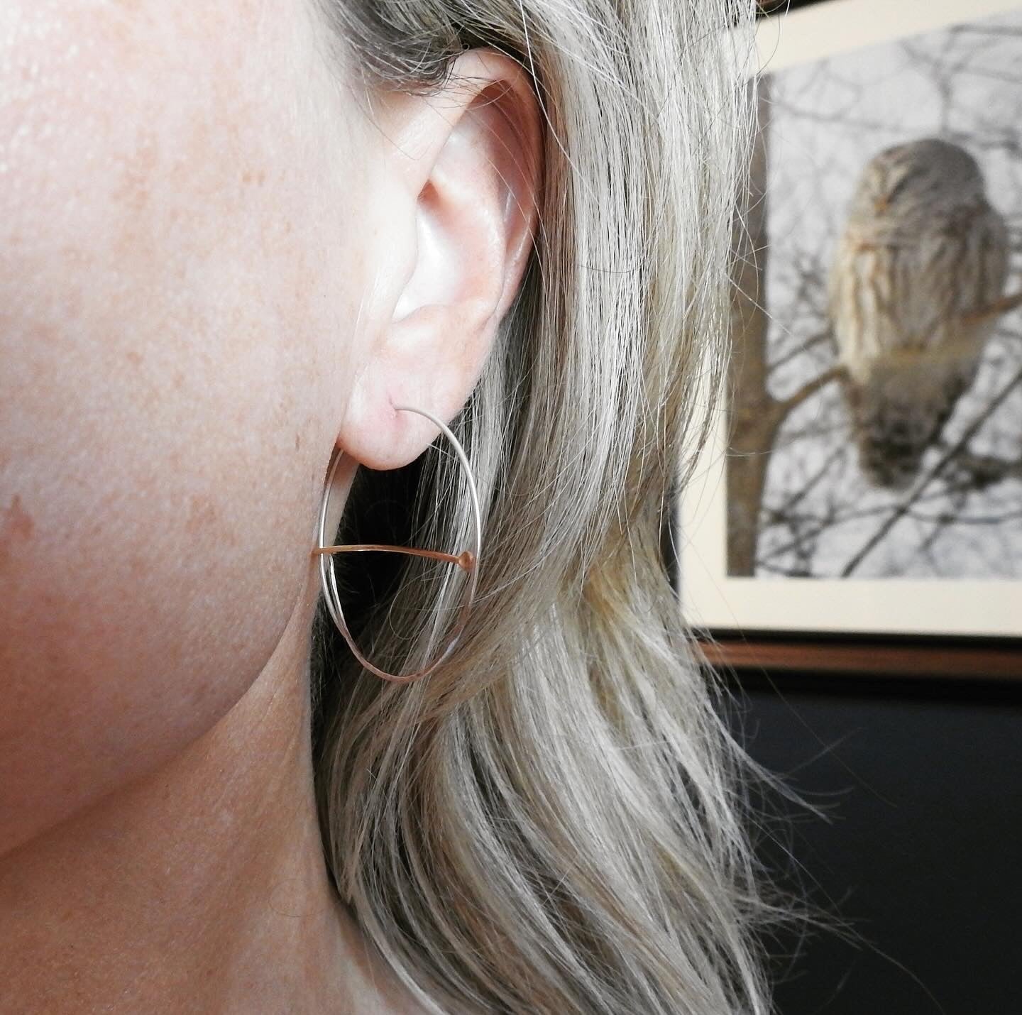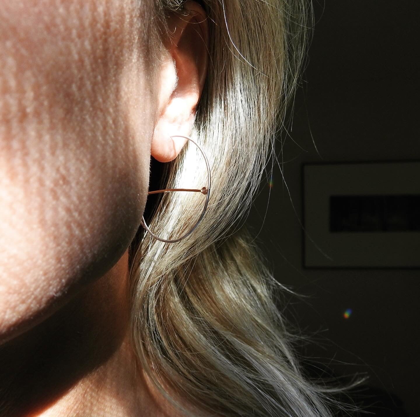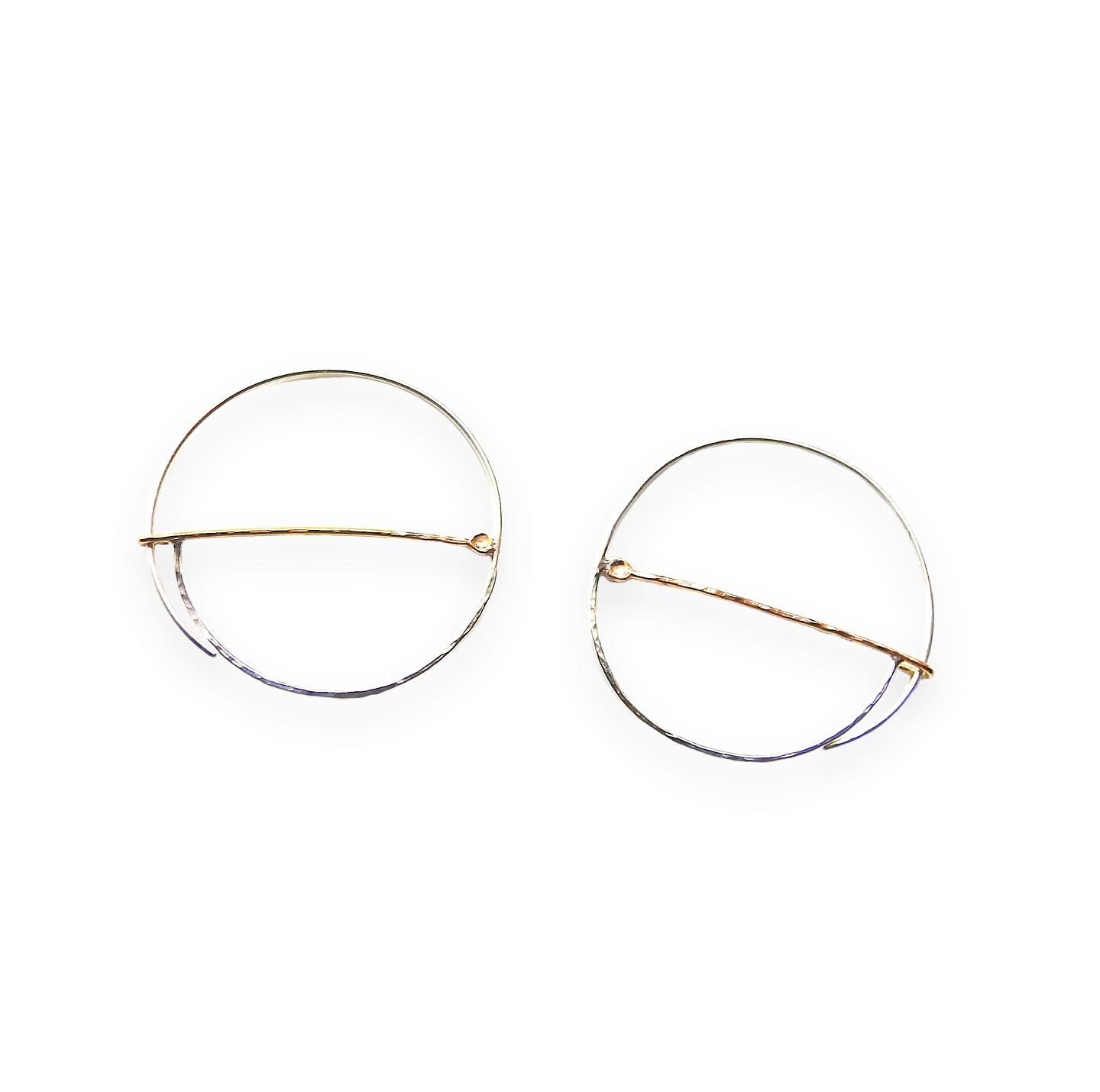 Thin solid lightweight hoops available in two tone or all one colour planished detailing with matte accent.