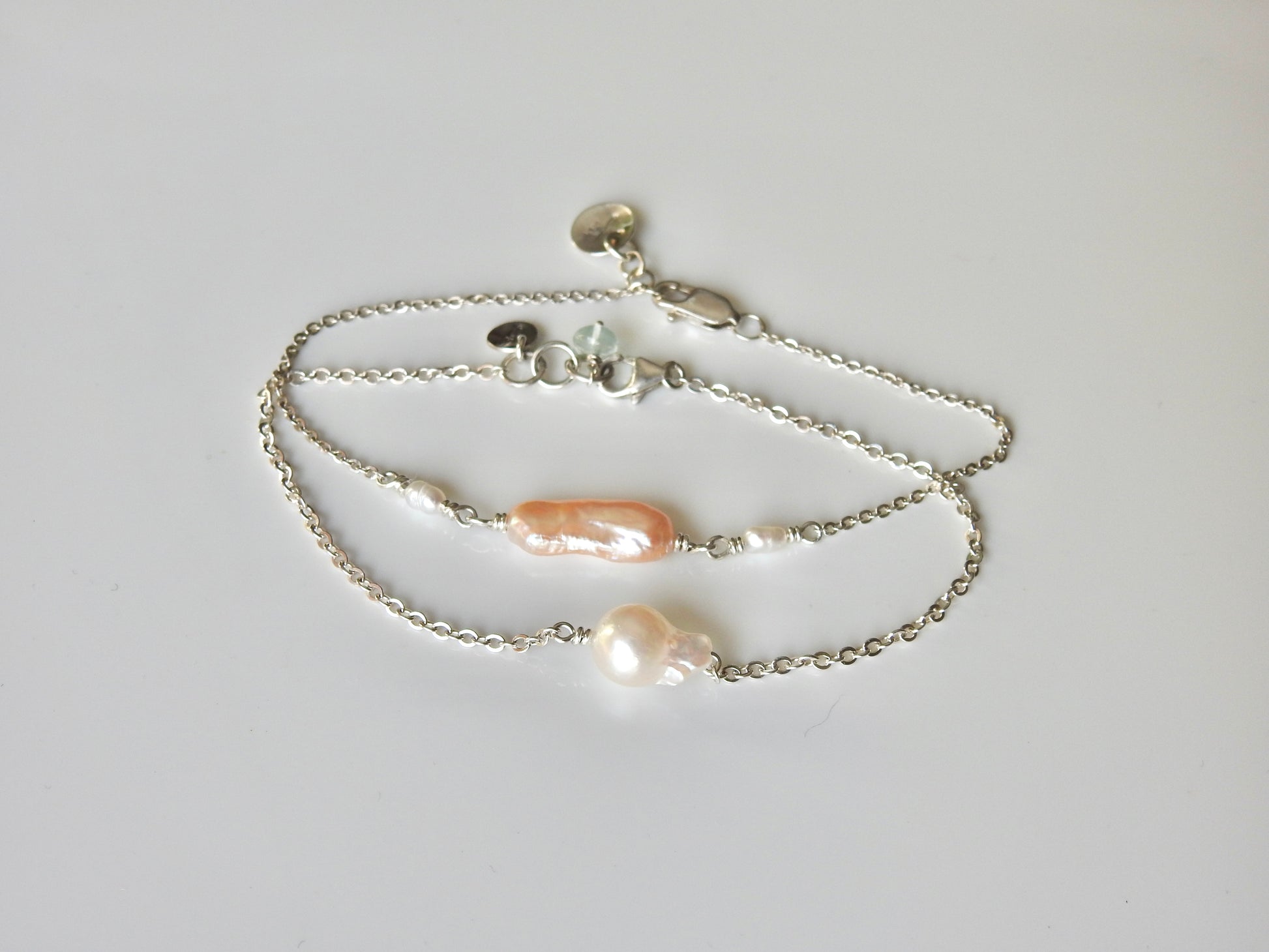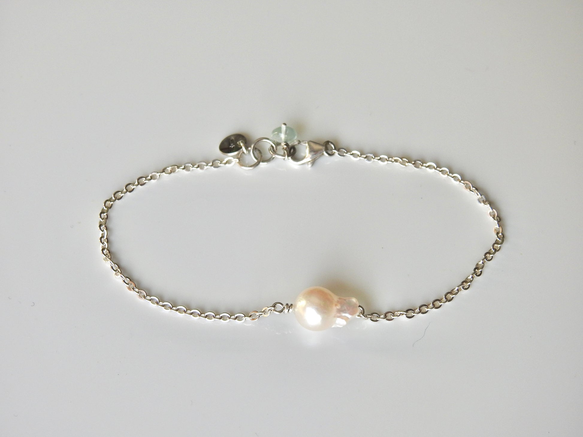 Unique fireball bracelet with a little aquamarine bead accent. Great on it's own or stack with more baroque pearl bracelet's. Also available in a Necklace.