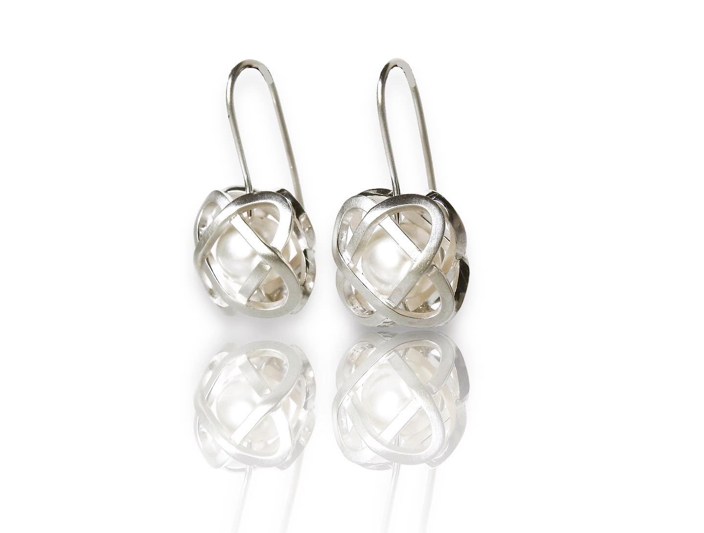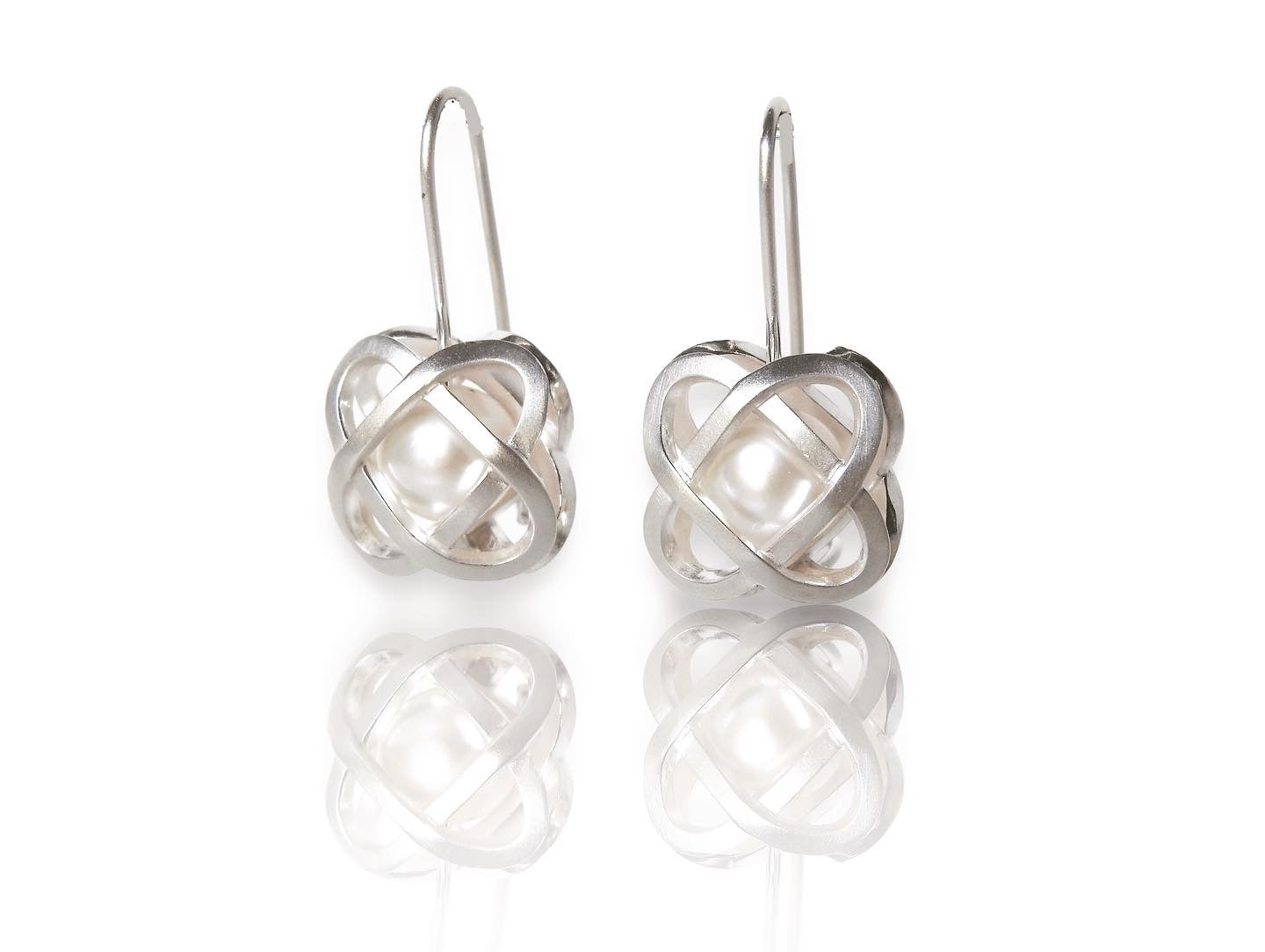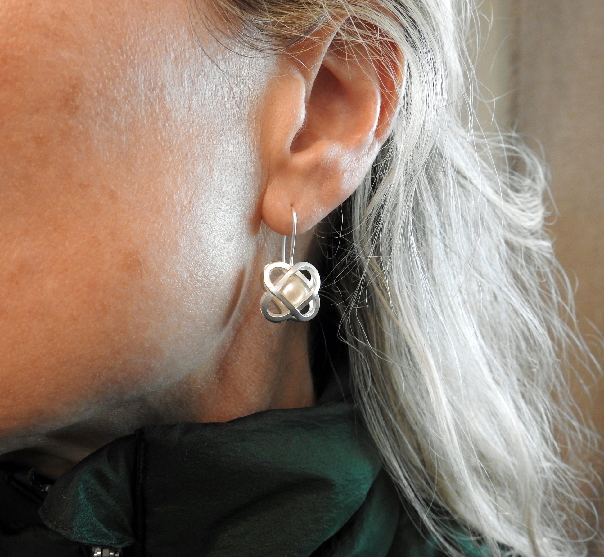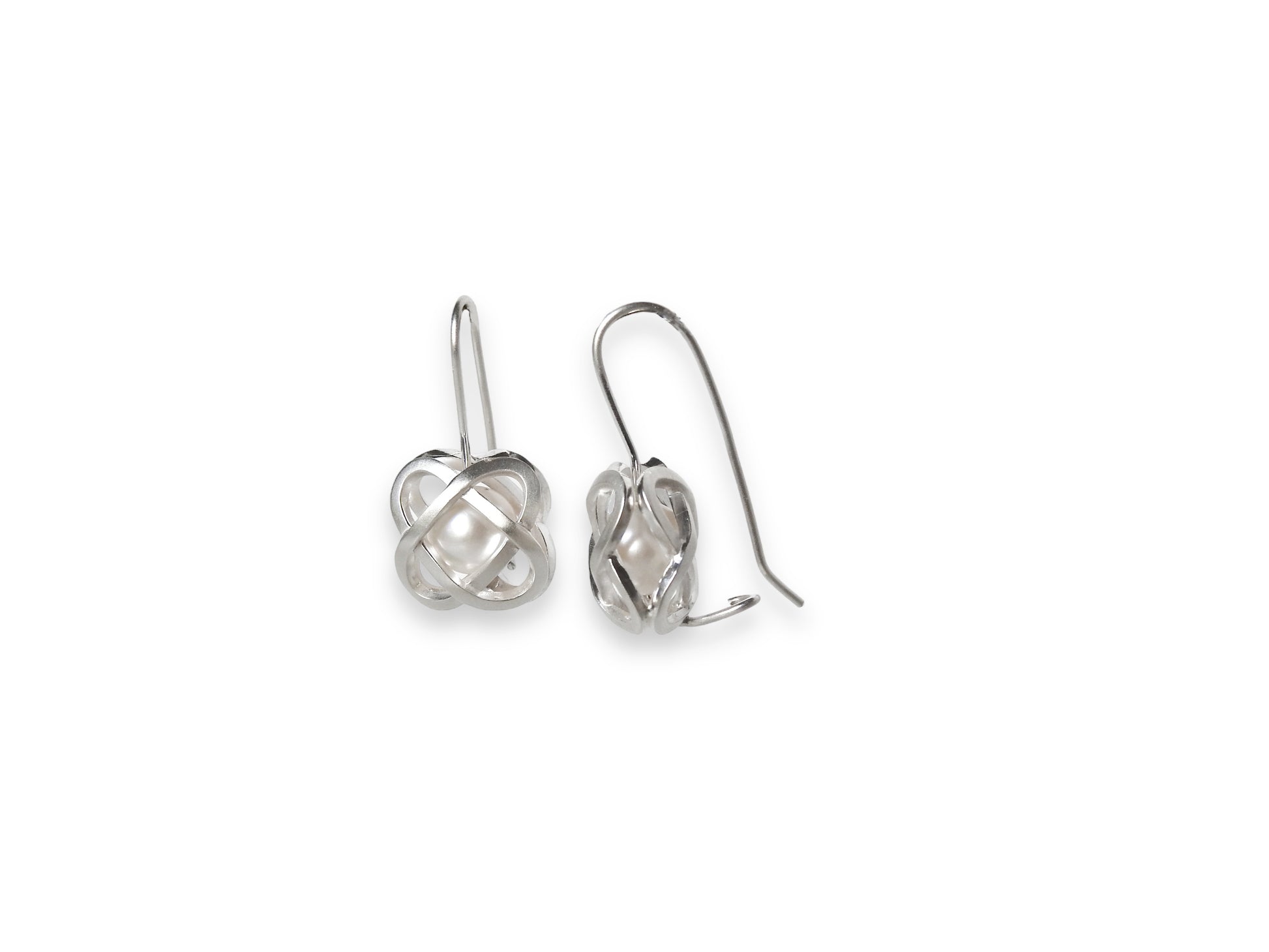 Soft rounded domed shaped love in every direction earrings with the natural beauty of a pearl in the centre and locking back shepherd hooks.