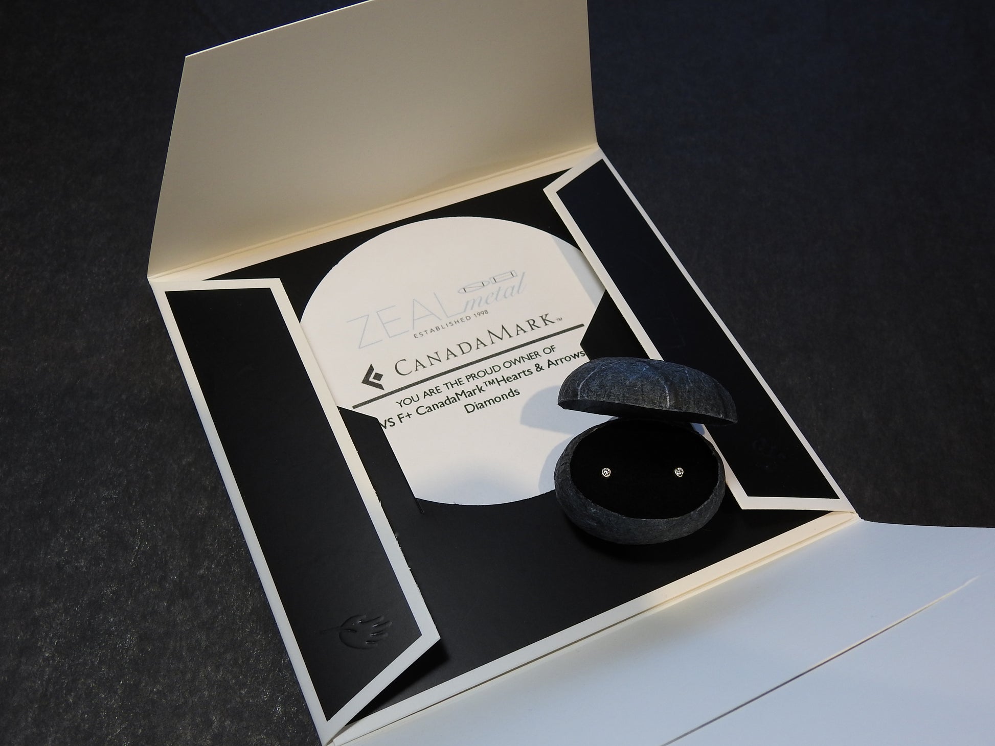 with 2 x .03ct VS F+CanadaMark™ Hearts & Arrows diamonds.