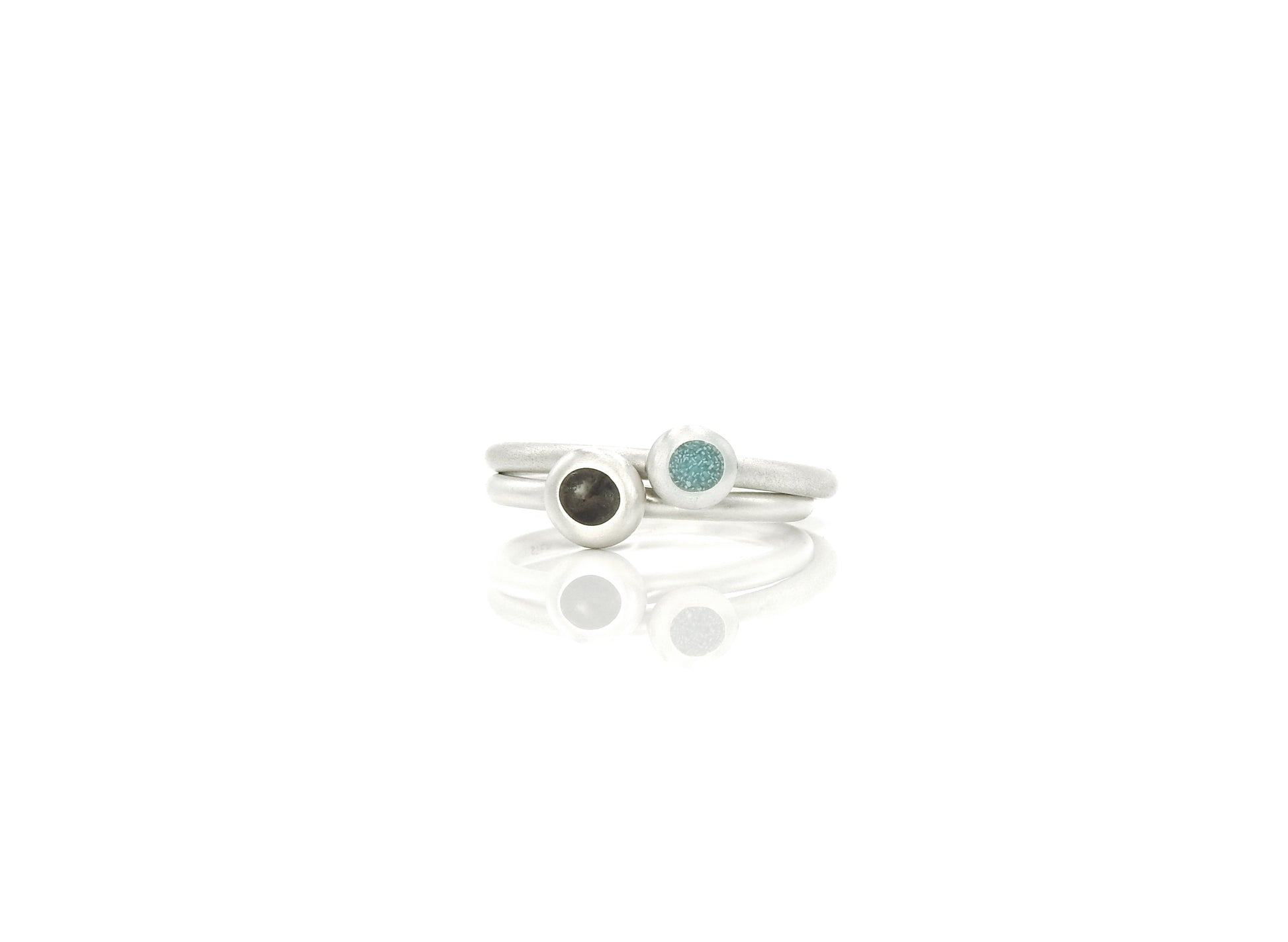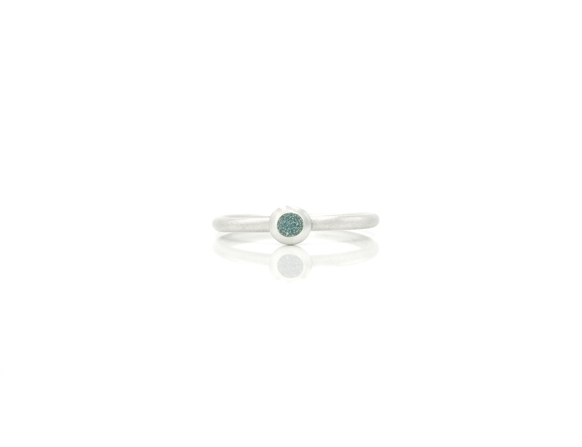 Sterling silver pebble stacker ring with robins eggshell inlay approximately 5.5 / 6 mm pebble on 2mm round wire band.