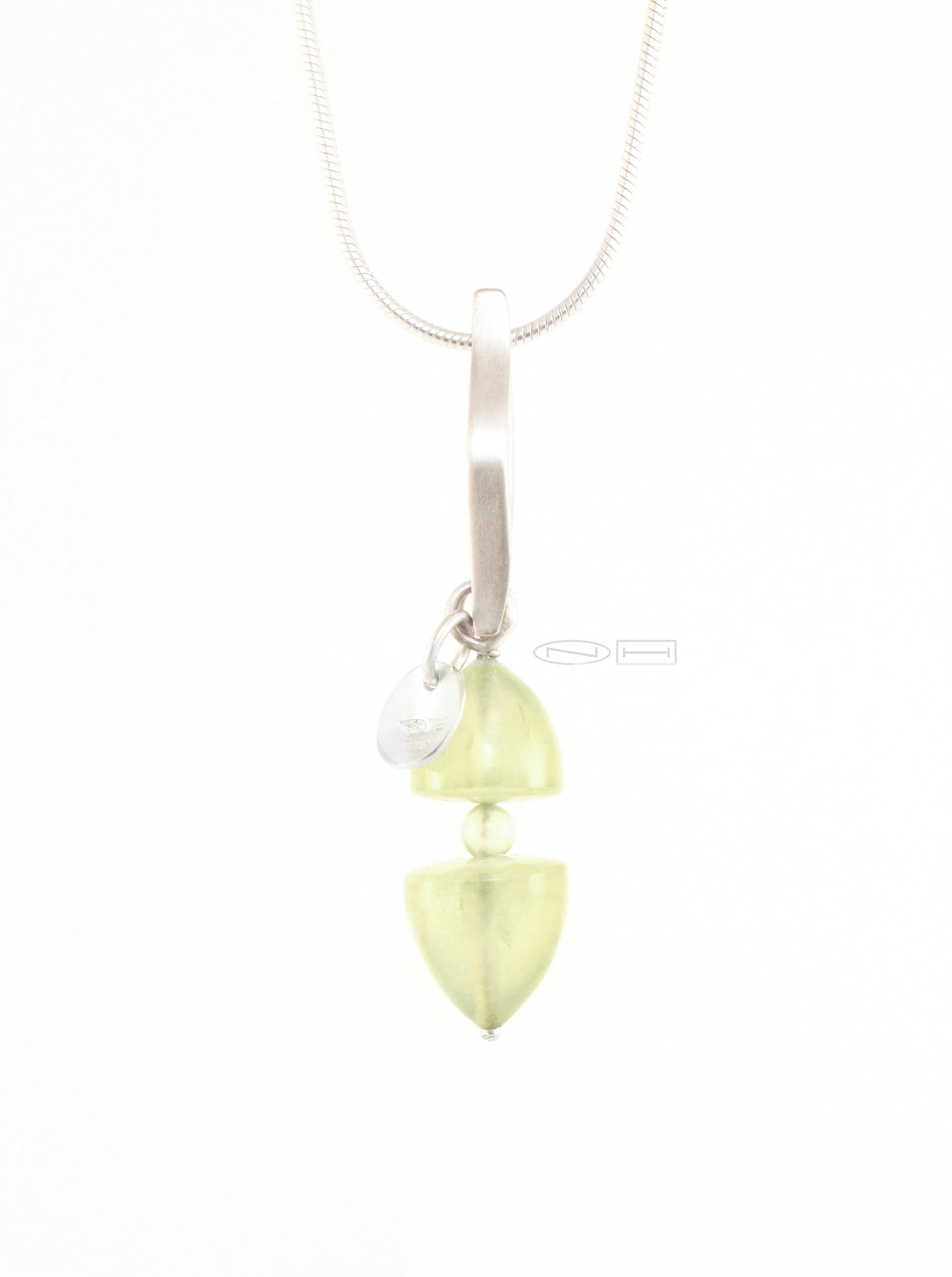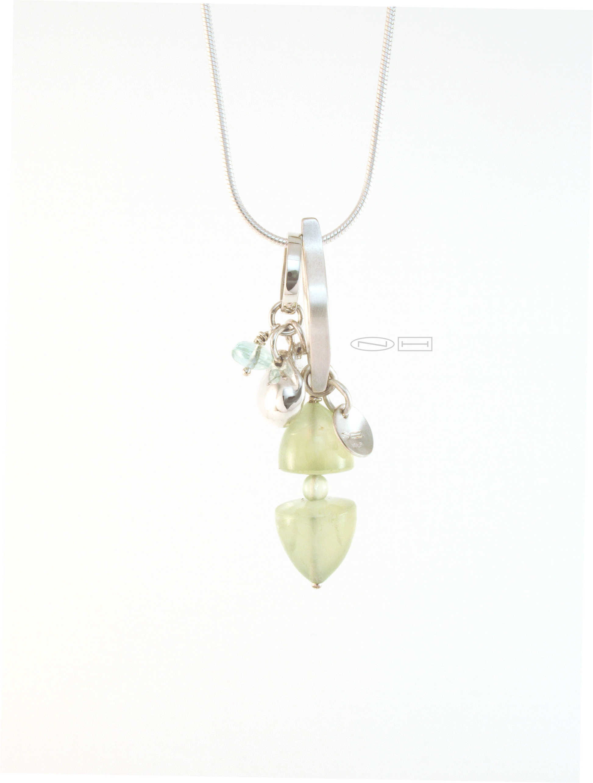 Stackable power pendants ~ Prehnite bullet, uniquely cut bullet shape beads on sterling silver marquis shaped wave bail matte finish.
