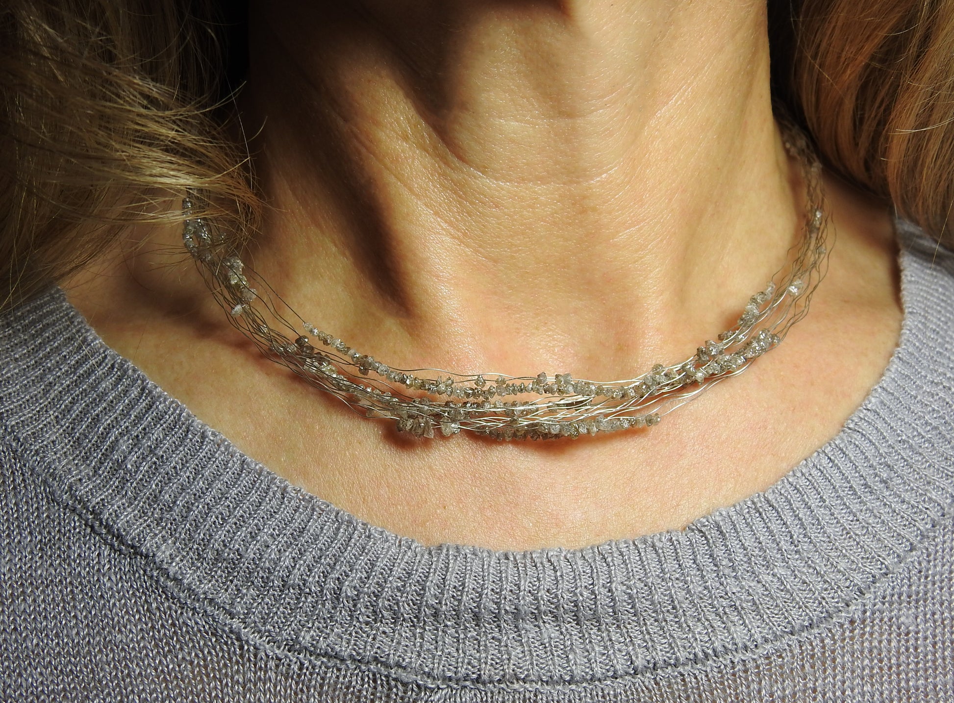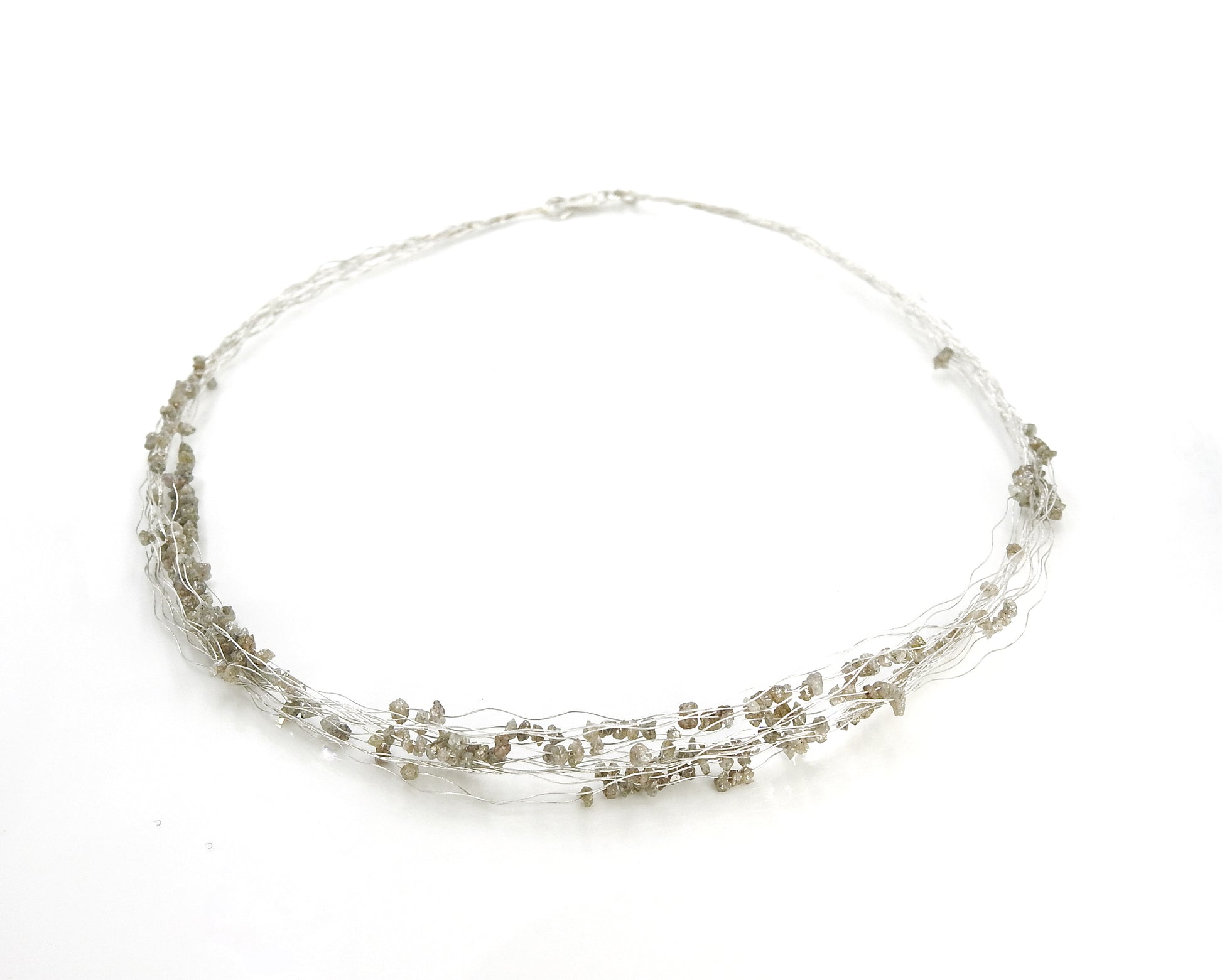 Sterling silver cable necklace with cognac coloured raw diamond beads.