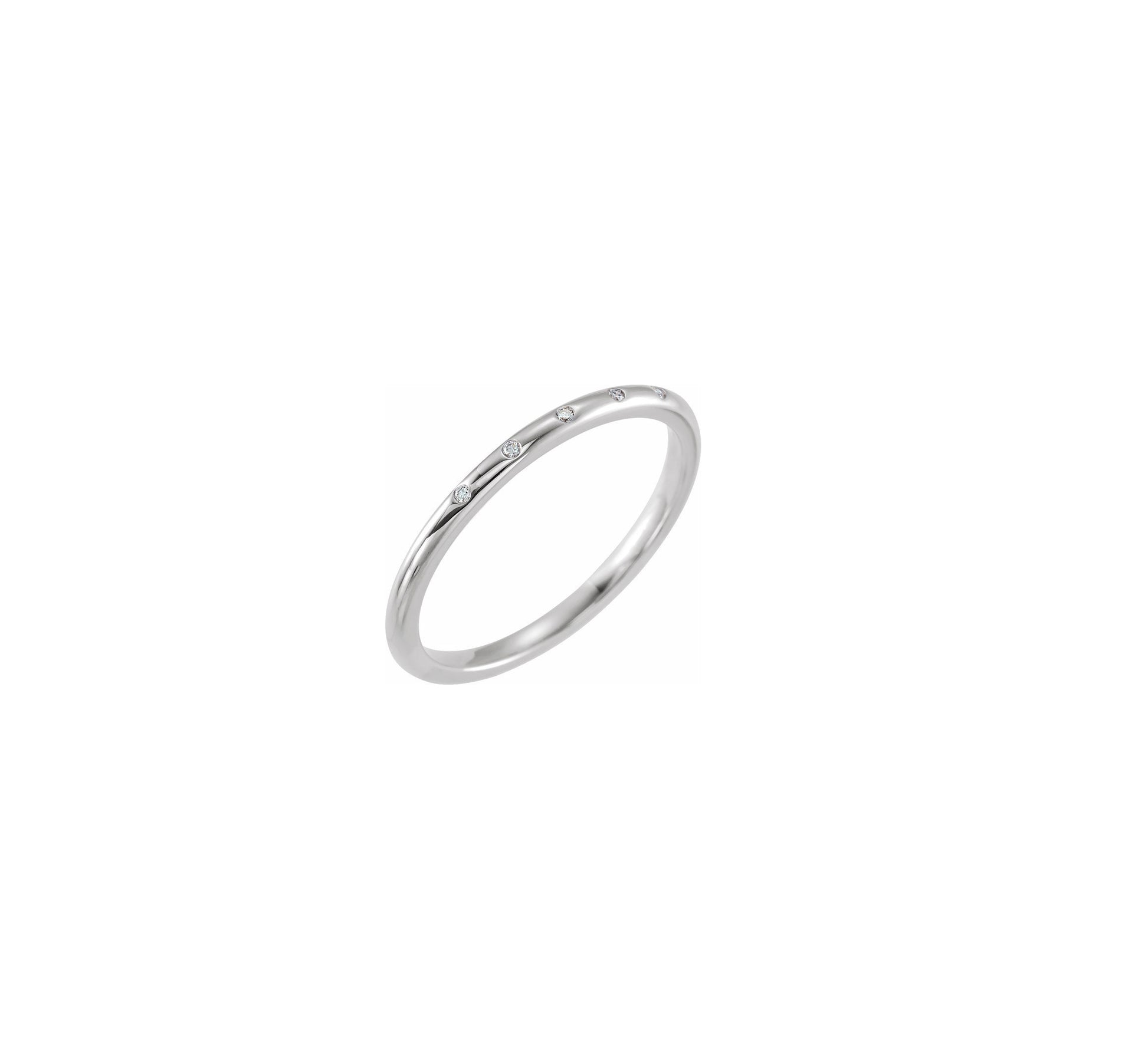 Simple classic rounded 1.5mm band with 5 x 1mm CANADAMARK diamonds scattered along the top of band.