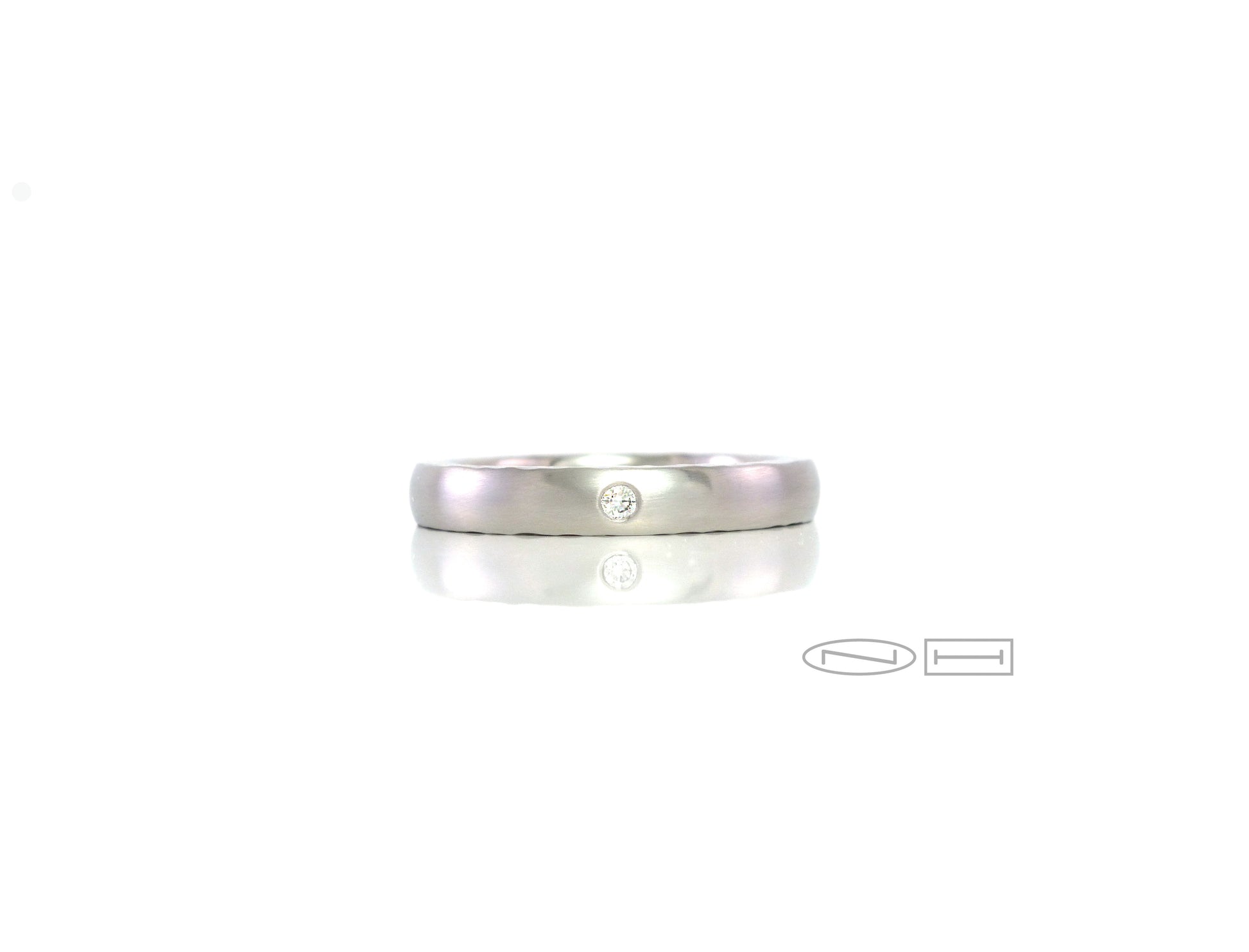 Handmade with care, Sleek with style rounded top with 3pt gypsy set diamond and planished detailed sides. Available in different size diamonds and or colour gemstones, single a few or many.