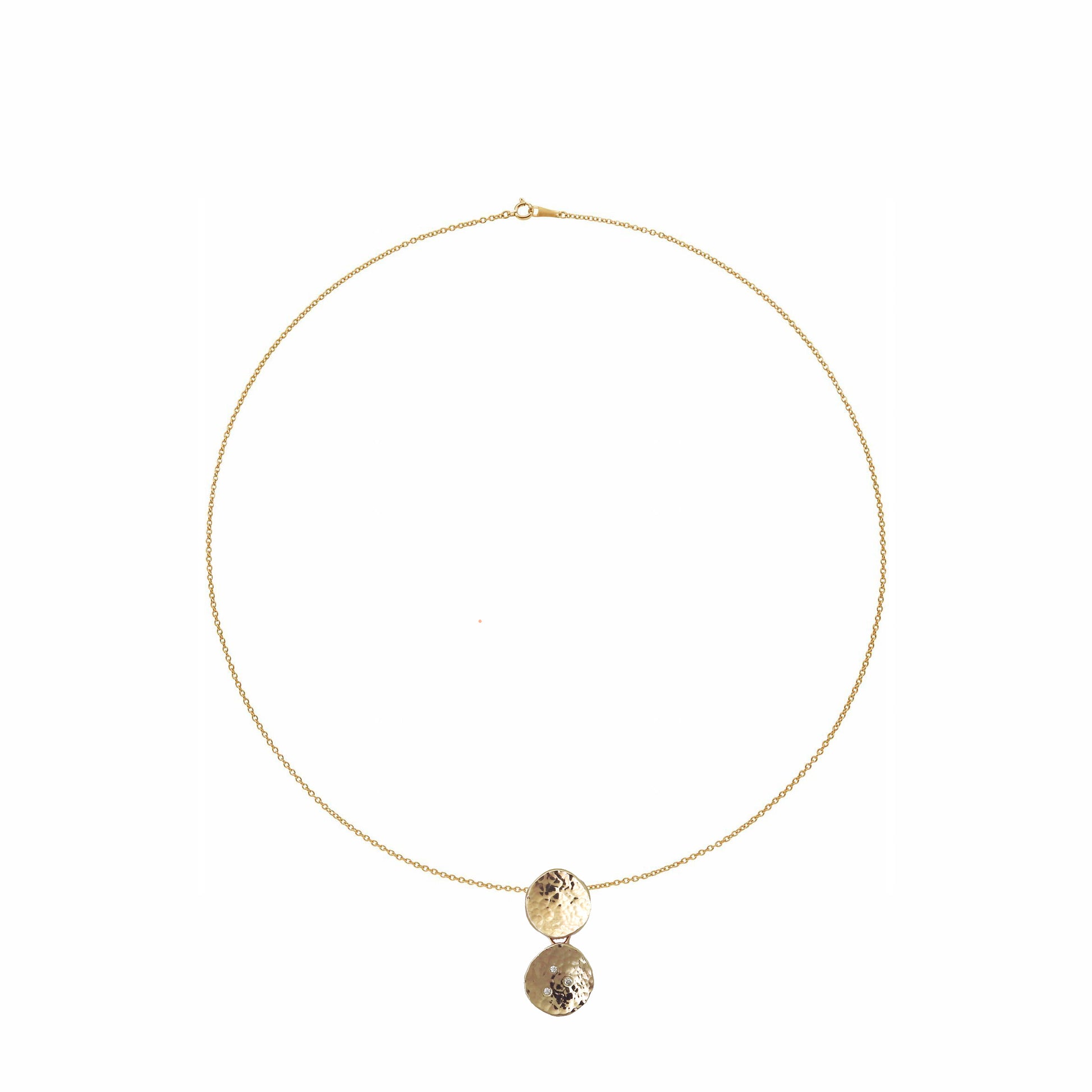 Sun disc reflected with added diamond sparkle. Light, sparkly planished, timeless necklace a reminder of our true being which is light ☀️. Hanging on 16" cable chain.