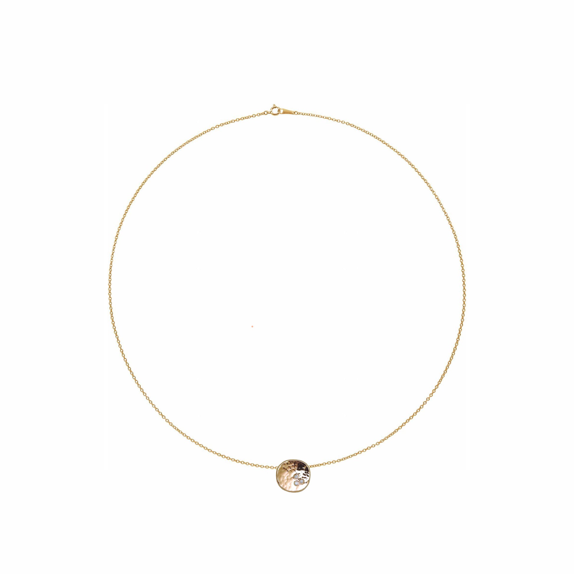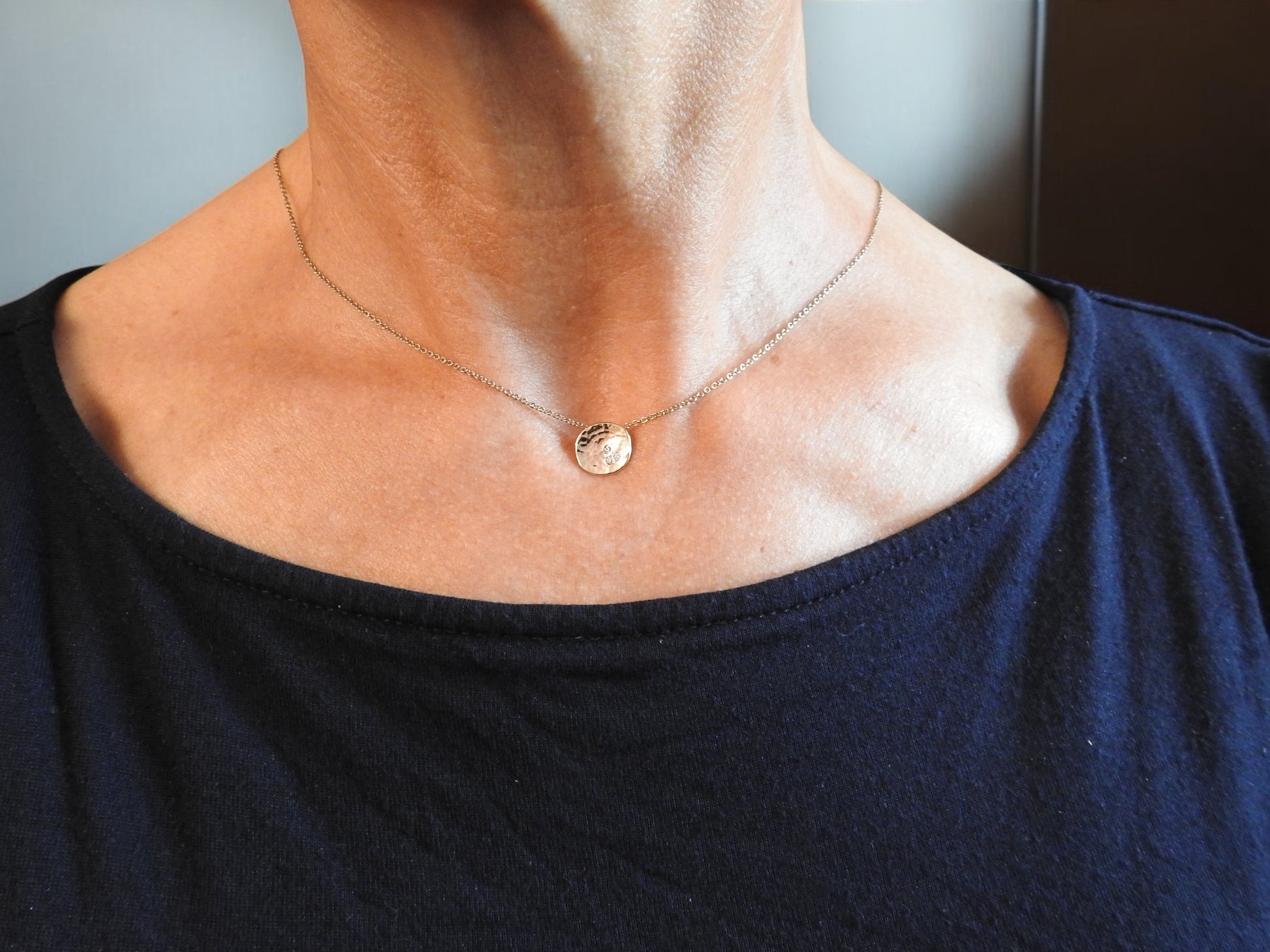 Planished sun disc necklace with some diamond sparkle on 14kty 16" Cable chain