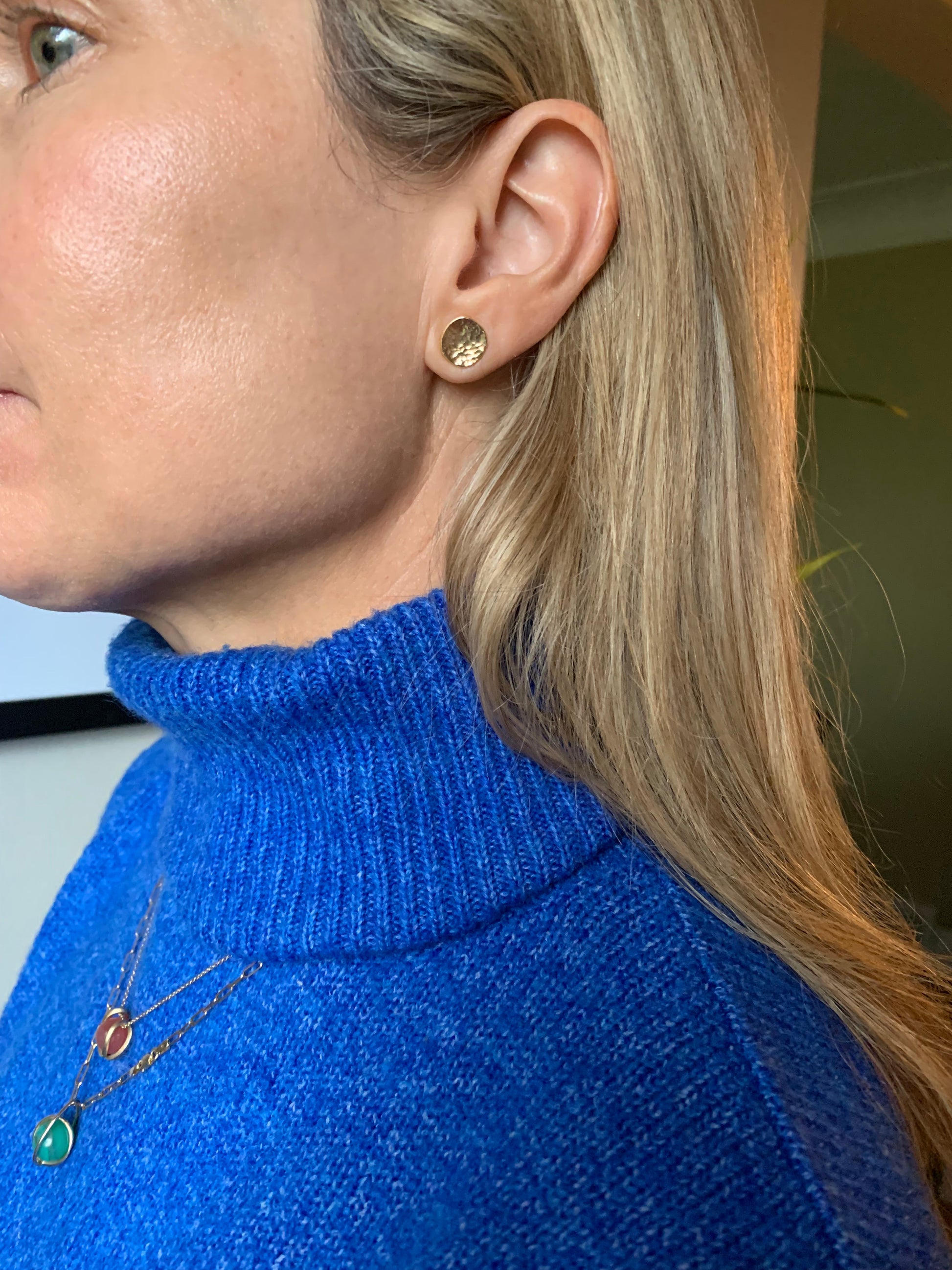 Luminous, dazzling sun disc studs, with a planish finish that reflects and sparkles.