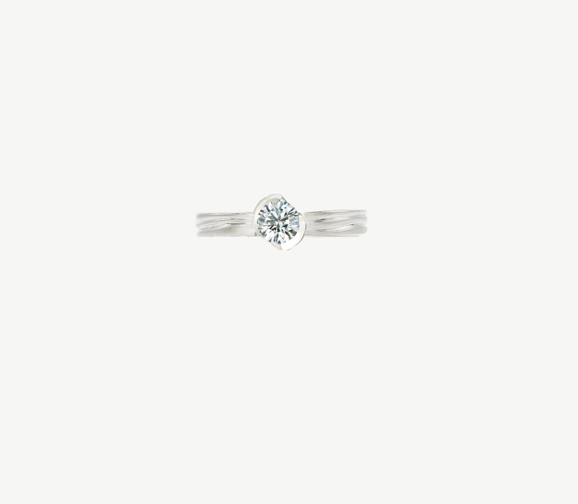 Soft flowing wave partial bezel ring with a soft hand carved wave band, set with a sparkling round brilliant natural diamond, or a lab-grown diamond. Whatever way is your preference this is a beautiful soft timeless ring is the perfect setting for your ideal stone.