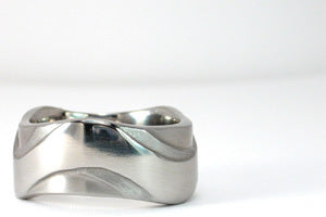 hand carved White gold waves ring with a combination of mat/ diamond textured and high polish finish.